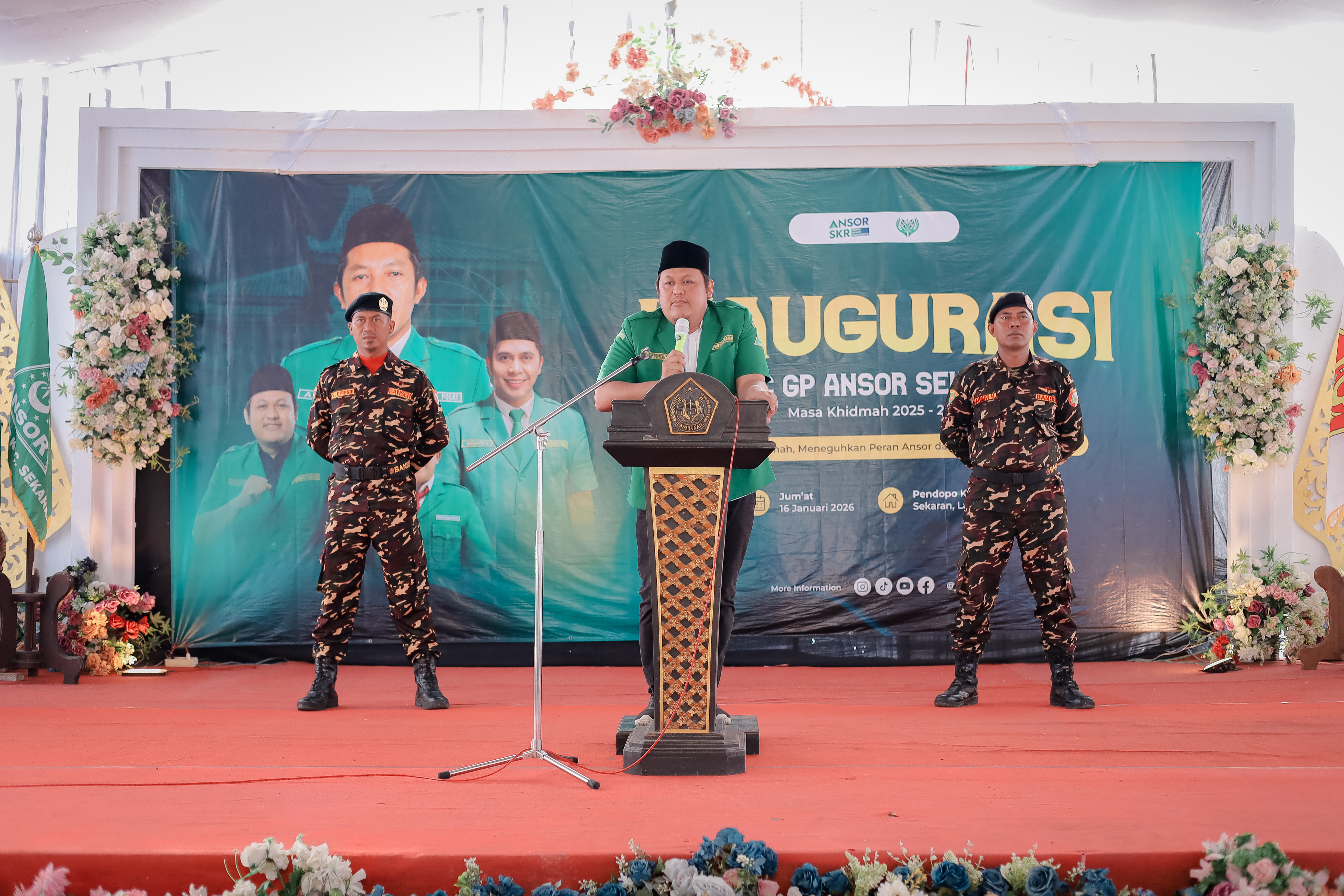 ansorlamongan.id | Lamongan – Jum’at, 16 Januari 2026, Inaugurasi Pimpinan Anak Cabang (PAC) Gerakan Pemuda Ansor Kecamatan Sekaran digelar di Pendopo Kecamatan Sekaran. Kegiatan ini tidak hanya menjadi momentum pengukuhan kepengurusan baru periode 2025–2028, tetapi juga dibingkai dengan aksi nyata gerakan ketahanan pangan berbasis kader melalui penanaman 5.000 bibit cabai secara serentak.