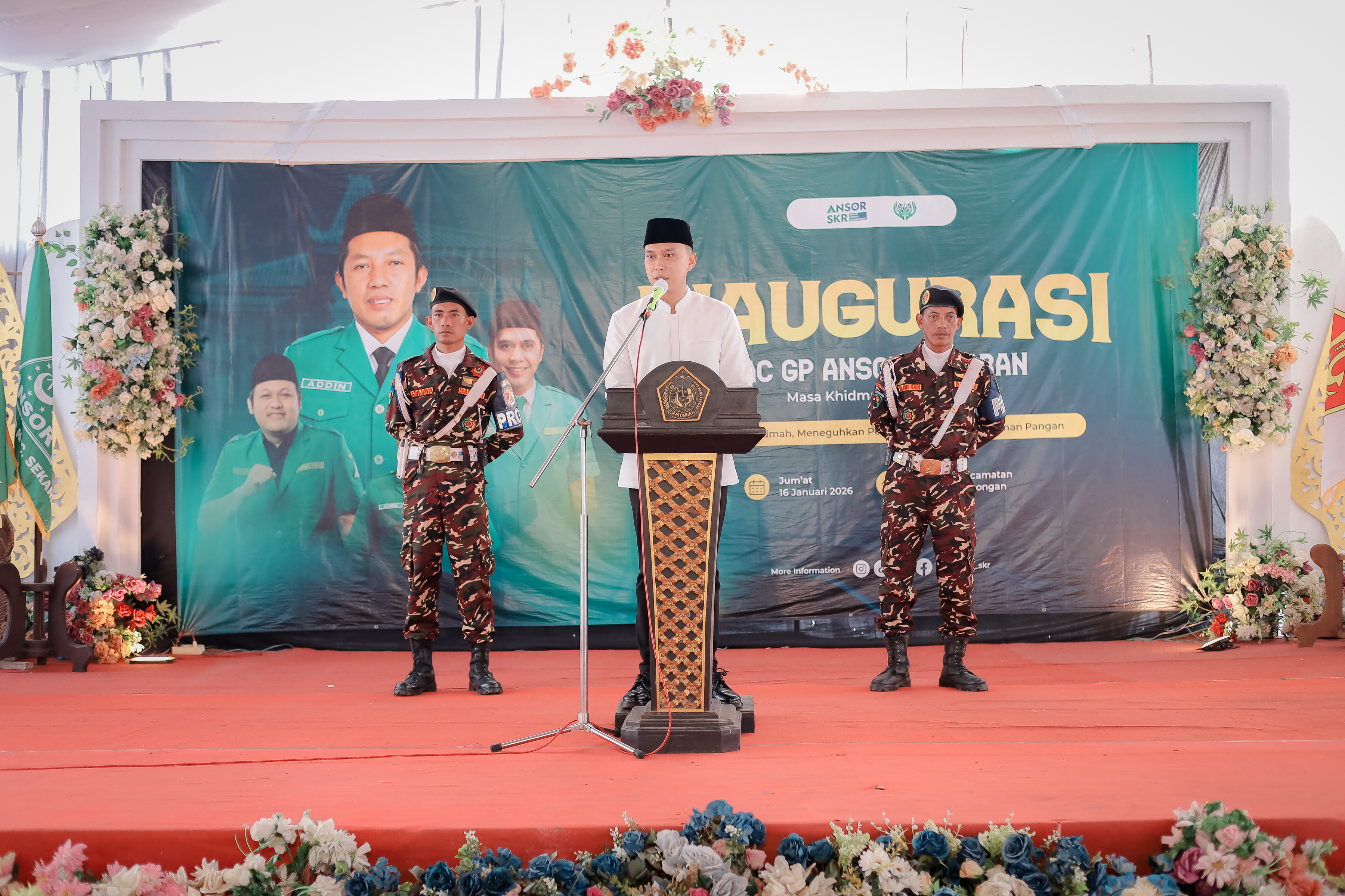 ansorlamongan.id | Lamongan – Jum’at, 16 Januari 2026, Inaugurasi Pimpinan Anak Cabang (PAC) Gerakan Pemuda Ansor Kecamatan Sekaran digelar di Pendopo Kecamatan Sekaran. Kegiatan ini tidak hanya menjadi momentum pengukuhan kepengurusan baru periode 2025–2028, tetapi juga dibingkai dengan aksi nyata gerakan ketahanan pangan berbasis kader melalui penanaman 5.000 bibit cabai secara serentak.