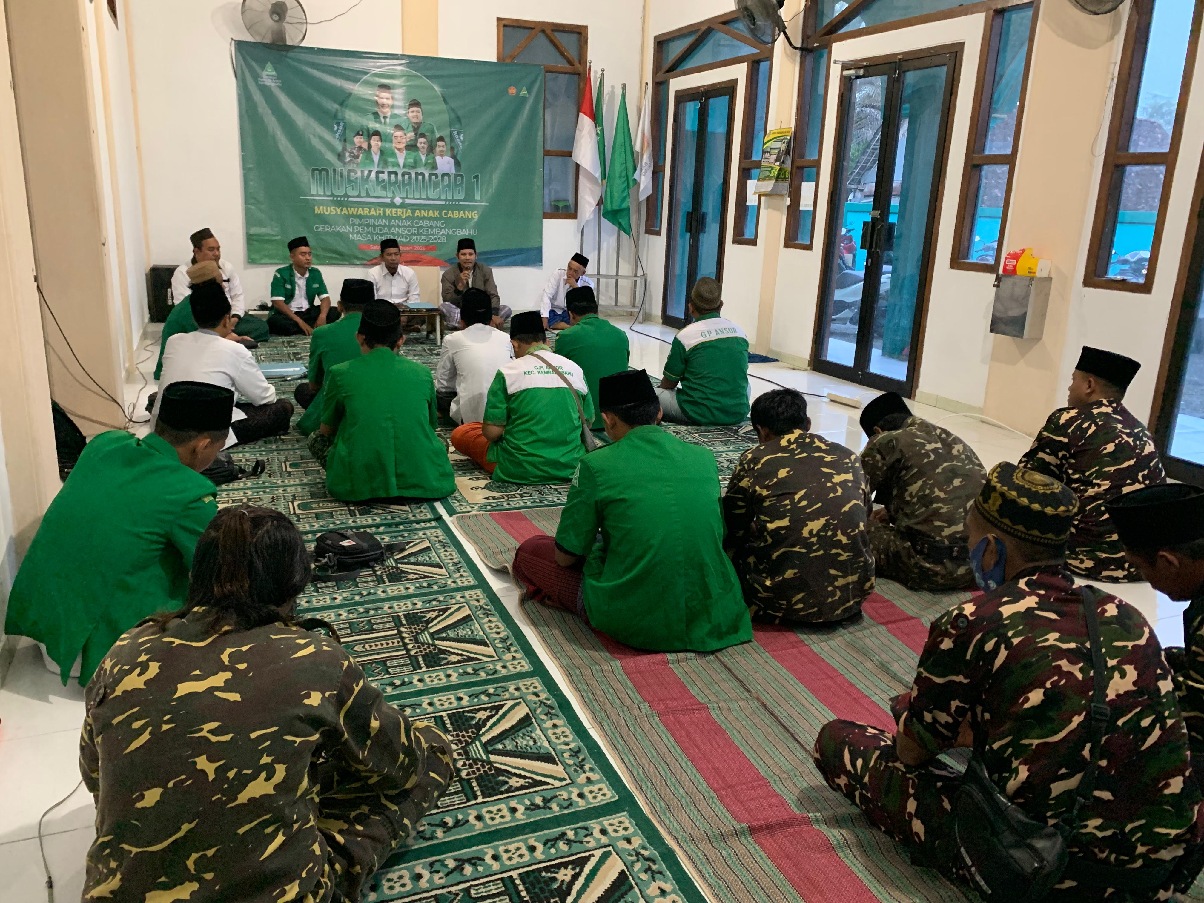 Kembangbahu, ansorlamongan.id — Pimpinan Anak Cabang Gerakan Pemuda Ansor Kembangbahu menggelar Musyawarah Kerja Ranting Cabang (Muskerancab) (28/02/2026) di bulan suci Ramadhan dengan penuh khidmat dan semangat kebersamaan. Kegiatan ini dirangkai dengan buka puasa bersama dan salat tarawih berjamaah, sebagai ikhtiar mengharap keberkahan Ramadhan dalam setiap langkah organisasi.